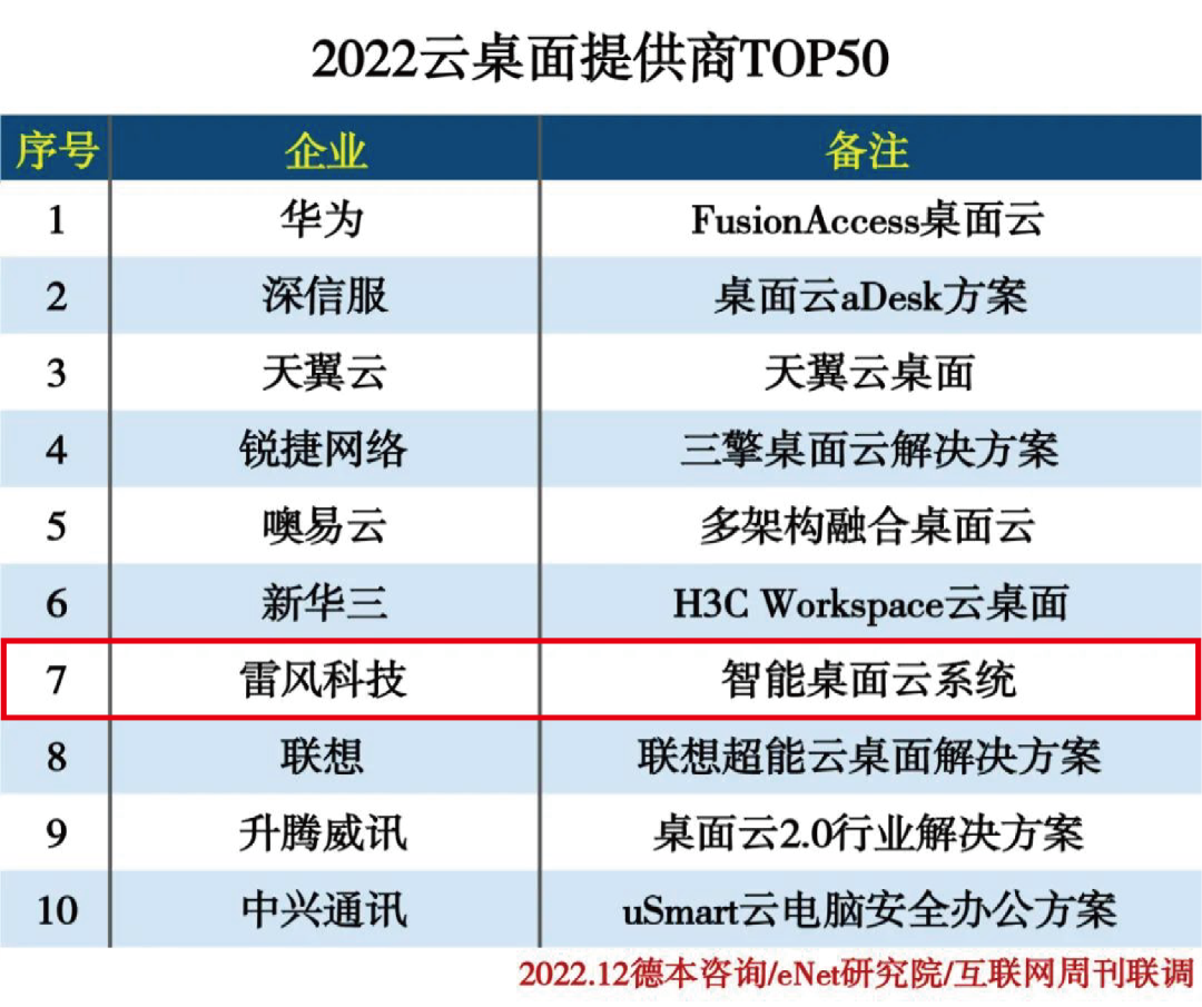 上榜(bang)中國科學院《互聯網周刊(kan)》2022云桌(zhuo)面提供商(shang)排行榜(bang)TOP7